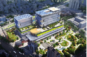 - 3) Roof garden: Through application of the cyclical principles of wetland ecosystems, rainwater is reused, and microclimate is regulated.